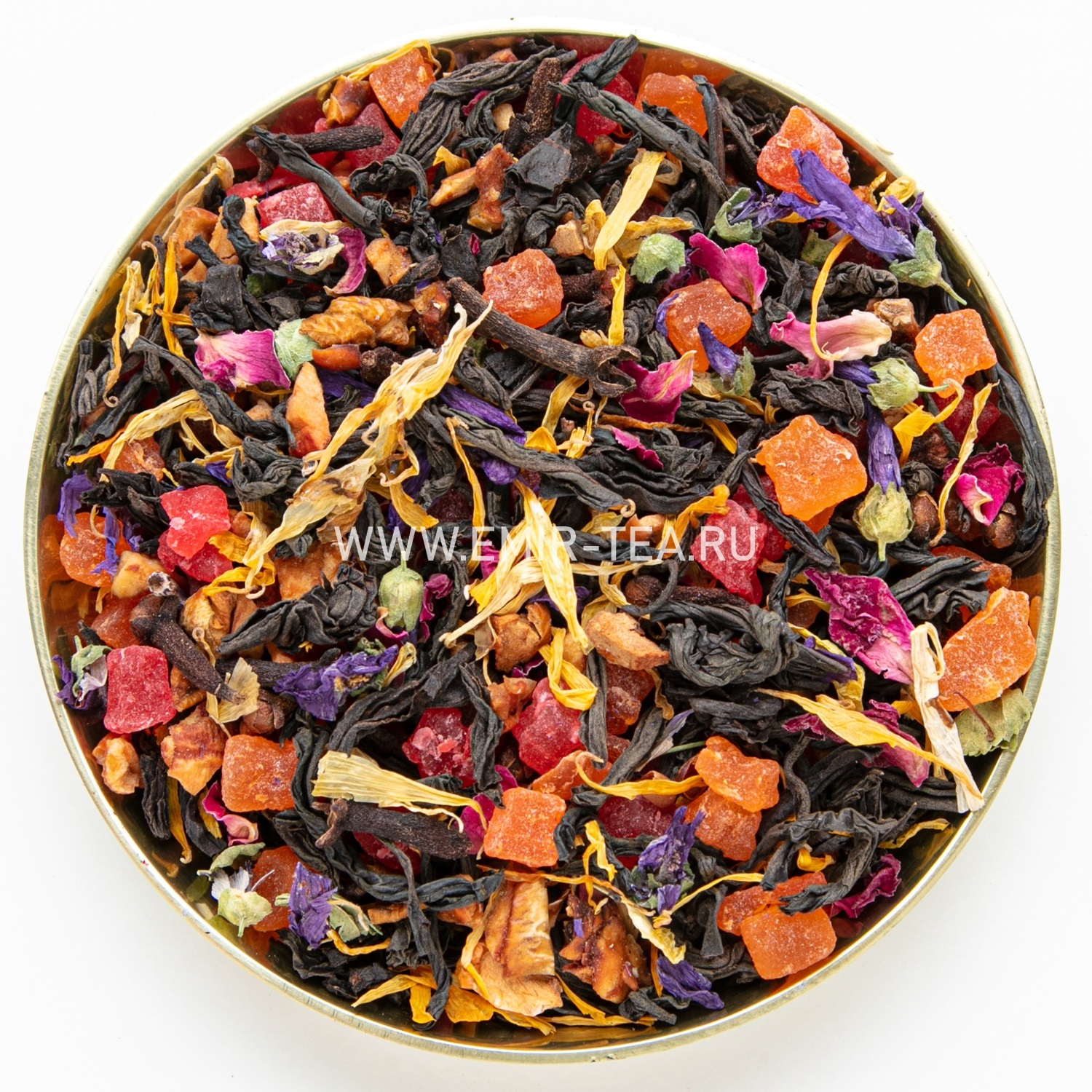 Состав: Купаж из классических черных индийских чаев с добавлением цукатов,лепестков розыи мальвы. Содержит пищевые ароматические масла. Не содержит ГМО.