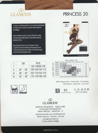 Производитель: Glamour Оптовая продажа. Чулки шелковистые с широкой кружевной резинкой на силиконовой основе и укрепленным мыском. Состав: Плотность: 20ден Лайкра: 12% Полиамид: 88%