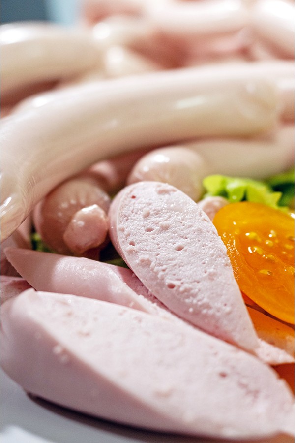 Цитратная смесь структурирует фаршевую эмульсию, вы получаете достаточно плотную текстуру на срезе без применения пищевых фосфатов.