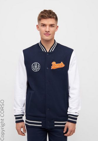 Artikelfarbe: navy Marke: Bench Sortiment: He. Jacken Größen-Kategorie: Normalgrößen Inverkehrbringer: Bench Fashion GmbH & Co. KG, Metternichstr. 32, 54292 Trier, Deutschland, Tel.- 496519919500, E-Mail- info@benchfashion.com Collegejacke von Bench, Mit stylischem Logodruck, In bester Marken-Qualität und in bequemer Passform, Obermaterial: 70% Baumwolle, 30% Polyester, N-Gr