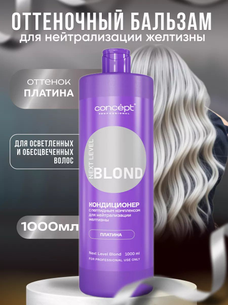 Кондиционер предназначен для нейтрализации желтизны, ухода, кондиционирования и тонирования обесцвеченных и осветленных волос. При использовании кондиционера, блонд приобретает модный холодный, платиновый оттенов. Кондиционер обогащен пептидным комплексом, что способствует укреплению осветленных волос, придавая им гладность и блеск. Кондиционер для волос это незаменимый косметический продукт в уходе за волосами он обеспечивает длительное увлажнение и питание волос, придавая им здоровый вид и блеск. Бальзам кондиционер для волос помогает ухаживать за волосами, делая их мягкими, шелковистыми и блестящими. Увлажняющий кондиционер для волос содержит специальные ингредиенты, которые помогают бороться с сухостью и ломкостью. Он помогает разгладить волосы, устранить их пушистость, а также предотвратить сечение кончиков.