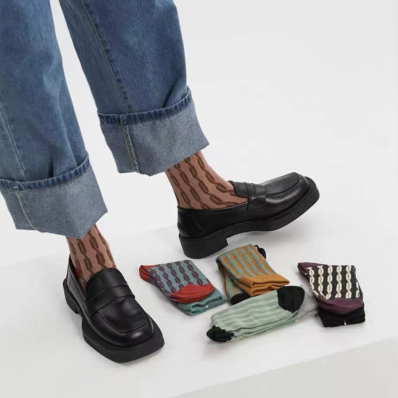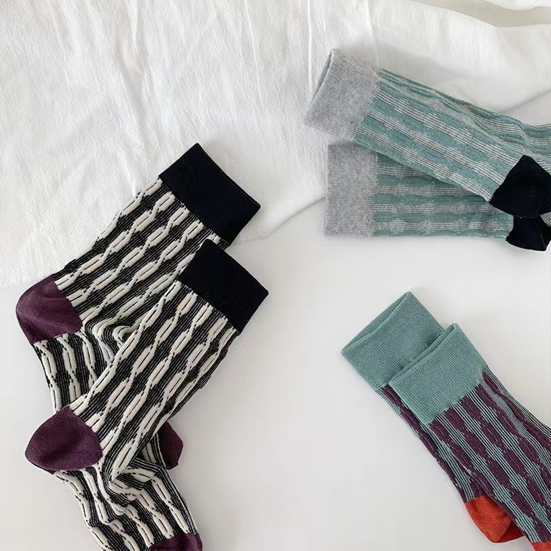 Contrasting color twist three -dimensional relief ladies retro wind cotton cotton cotton socks Korean ins spring retro forest