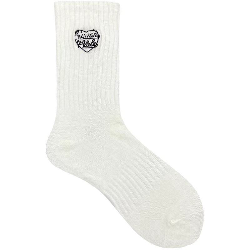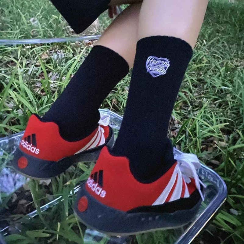 Cotton colored socks for men and women, Japanese version, with embroidery, mid length