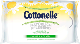 Cottonelle Feuchtes Toilettenpapier Natürlich Pflegend mit Kamille und Aloe Vera sorgt für Sauberkeit jeden Tag. Im Gegensatz zu trockenem Toilettenpapier spendet Cottonelle aktiv Pflege und schont die sensible Haut.
