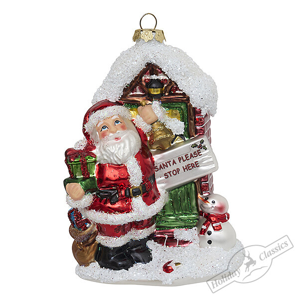 Дед Мороз с подарками стучится в дверь (стекло) 11х7,5х15,5 см