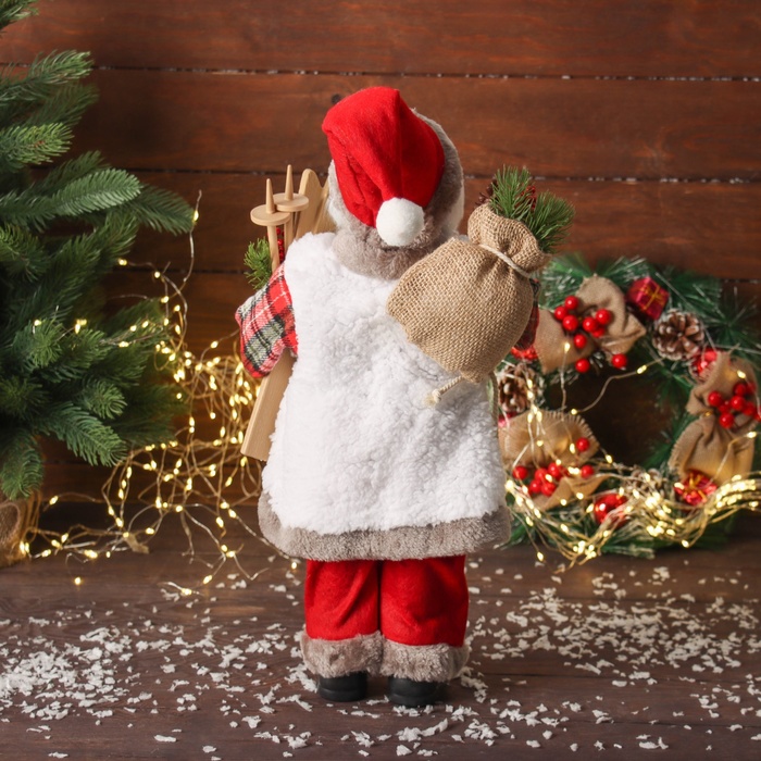 Фигура Деда Мороза высотой 45 см в традиционном красном наряде с веточками — изящное украшение для новогоднего интерьера, выполненное в стиле скандинавского и датского дизайна. Этот декоративный элемент оживляет праздничное пространство благодаря плавным движениям, создавая ощущение живого присутствия зимнего волшебника. Работая на батарейках, он не требует подключения к сети, что упрощает размещение и делает его универсальным решением для дома, офиса или витрины.