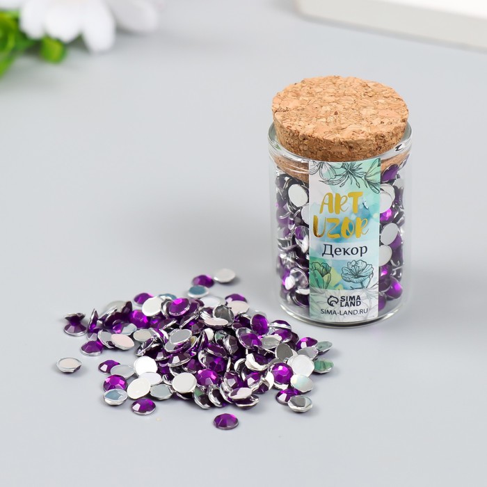 Декор для творчества в бутылочке «Стразы. Тёмно-фиолетовый», набор 500 шт., d=0.5 см, 7×2×2 см