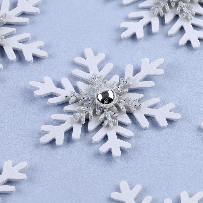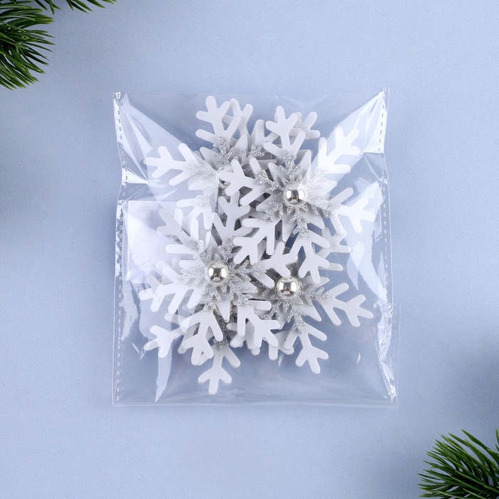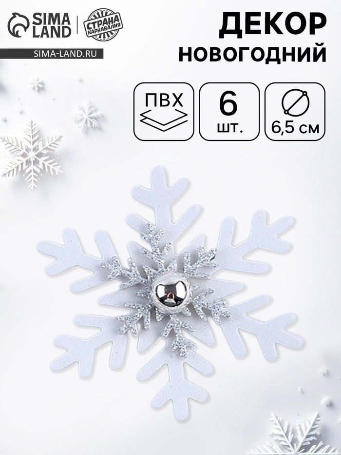 Габариты: 10 x 12 x 0,5 Страна: Россия В боксе: 450 набор В наборе: 6 набор Состав: ПВХ, пластик Материалы: ПВХ, пластик Фасовка: по 1 набор Сертификат: Не подлежит сертификации Набор: Да Цвет: Белый, Серебристый Высота, см: 6,5 Символ года: Нет Тематика праздника: Новый год Материал: ПВХ, Пластик Новый год — самый волшебный праздник в году, и в этот день всё должно быть таким же сказочным и чудесным, особенно декор. В наборе 6 белых снежинок с серебристыми элементами диаметром 6,5 см. Как прикрепить декор