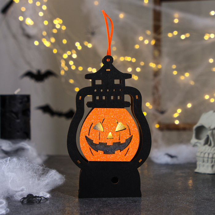 Декор с подсветкой «Фонарь с тыквой» — это оригинальный элемент для украшения Хэллоуина.