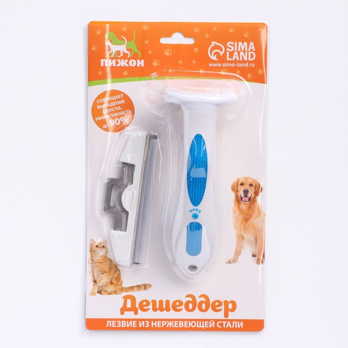 Производитель: Пижон; Габариты: 24 x 14 x 6; Страна: Китай; В боксе: 96 шт; Состав: Металл, пластик; Материалы: металл, пластик; Фасовка: по 1 шт; Индивидуальная упаковка: подложка, блистер; Габариты товара: 15 см × 10,5 см; Сертификат: Не подлежит сертификации; Цвет: Белый, Голубой; Ширина, см: 10,5 Дешеддер для удаления отмершего подшерстка у животных. Ключевые особенности: Уменьшает линьку на 90 %! Предотвращает появление колтунов. Глубоко проникает в шерсть, не повреждая кожу и остевой волос. Делает шерсть здоровой и блестящей. Во время линьки шерсть питомцев оказывается повсюду. Без должного ухода она может доставить массу неприятностей. Помочь этого избежать может дешеддер. Этот чудо-инструмент эффективно и быстро удаляет выпадающую шерсть и предотвращает появление колтунов.