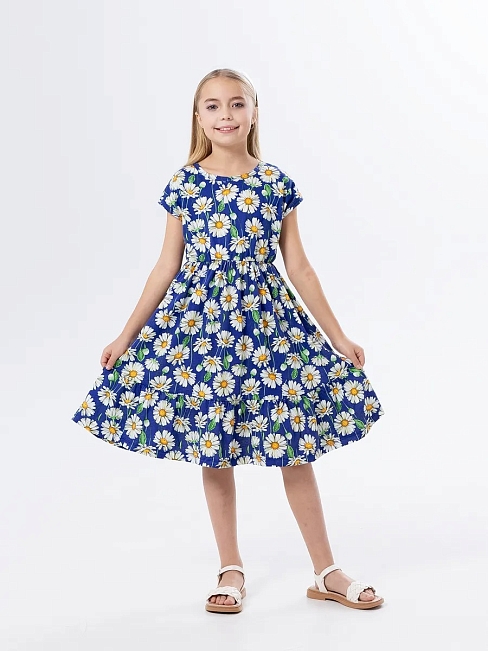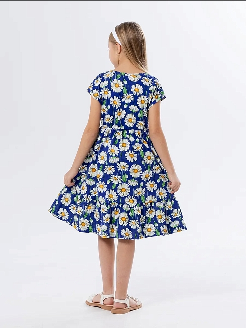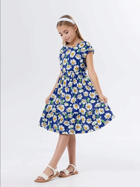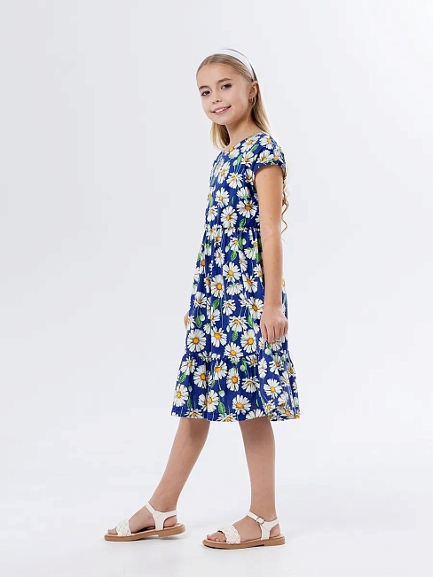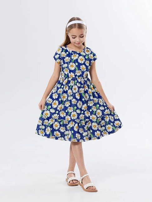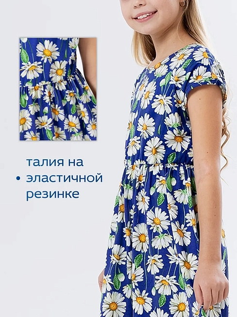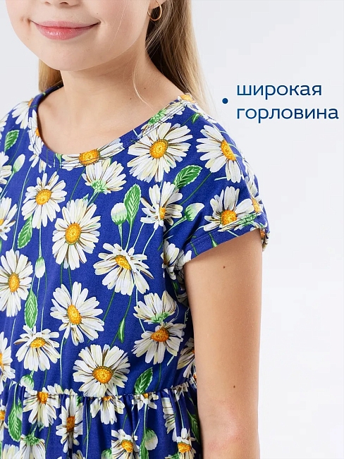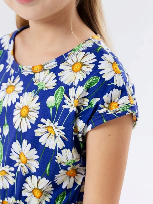 Материал: Кулирка; Состав: 100% хлопок; Застежка: Без застежки; Длина рукава: Короткий рукав; Размерный ряд: 104-158; Цвет: Синий; Тип рисунка: Растения; Пол: Девочка