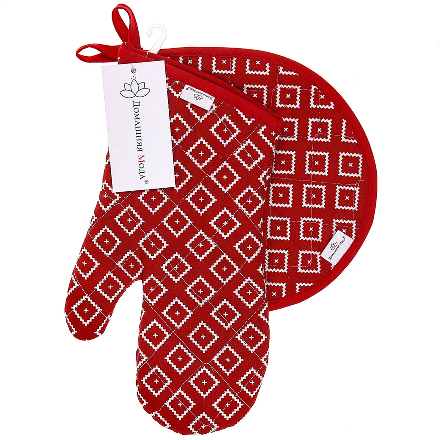 "Диагональ брусничный" Кухонный комплект: прихватка-варежка 15х30см + прихватка "Капелька" 20х25см, хлопок "Премиум" 191г/м2 - хлопок 100%, наполнитель - ватин 280гр/м2, "Домашняя мода" (Россия)