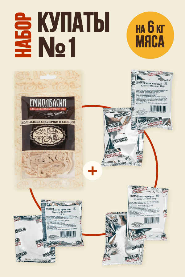 В наборе три смеси приправ - Купаты Куриные, Купаты Острые, Купаты Пряные. Смеси абсолютно разные и не похожие, воссоздать это сочетание пряностей из "подручных специй" самостоятельно довольно сложно.