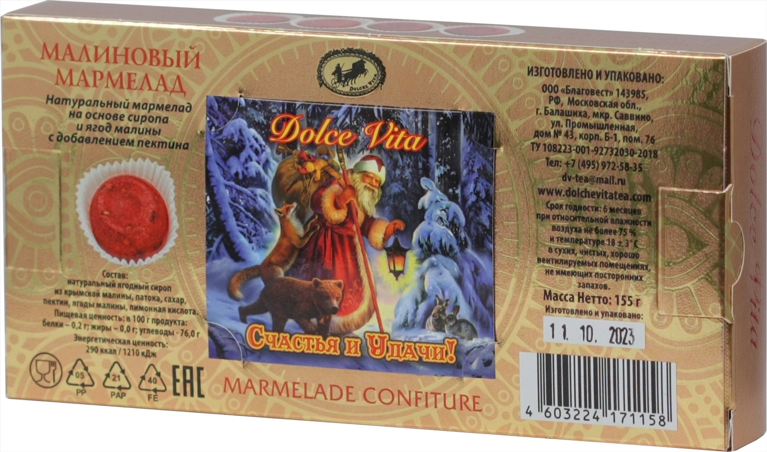 Производство: РОССИЯ; Наличие: >100 Натуральный мармелад на пектине. Вкус: Малина.Приготовлен по уникальной рецептуре, которая позволила сохранить все полезные свойства исходного продукта. Особо выраженный вкус мармеладу придают натуральные ягоды.Мармелад — низкокалорийная сладость, он обладает диетическими достоинствами. Пектин — естественный очиститель организма от шлаков, выводит токсины, нормализует работу пищеварительной системы, снижает уровень холестерина в крови.В составе натуральный сироп из крымской малины, патока, сахар, пектин, ягоды малины, лимонная кислота.