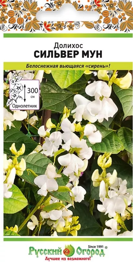 Быстрорастущая лиана добавит тропических нот дачному пространству! В середине лета на фоне мозаики из зеленых сердцевидных листьев массово распускаются вертикальные кисти белых соцветий. Каждый цветок живет 3 дня, цветочная кисть – до 20 дней! Растение подходит для вертикального озеленения и контейнерного выращивания. В конце лета созревают плоские зеленые бобы 5-10 см в длину.
