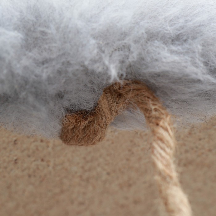 Домик выполнен из прочных и качественных материалов: текстиль, ДСП и джут, что гарантирует его долговечность и устойчивость. Мягкая меховая подстилка внутри домика создает тепло и уют, позволяя вашему питомцу чувствовать себя в безопасности. Два столбика, обтянутые джутом, обеспечивают идеальное место для точения когтей, удовлетворяя естественные потребности кошки и защищая ваш интерьер от повреждений.