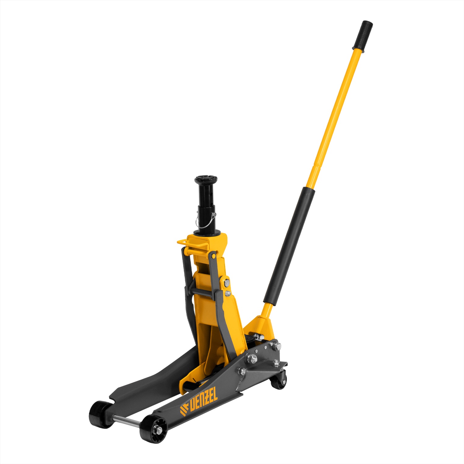 Профессиональный подкатной гидравлический домкрат Denzel 51270 с низким подхватом используется для быстрого подъема на высоту 98-770 мм всех типов автомобилей с любым клиренсом и массой до 2-3 т, в том числе SUV (внедорожников). Регулируемая проставка позволяет менять высоту подхвата и подъема, а также максимальную грузоподъемность. Высота подъема до 770 мм позволяет без труда обслуживать автомобили с высоким клиренсом, такие как рамные внедорожники, например, Dodge RAM, Ford Raptor и т.д. В гидравлическом блоке предусмотрено 2 насоса (система быстрого подъема QUICK LIFT), благодаря чему для достижения предельной высоты достаточно 6 качков рукоятки. Домкрат подходит для использования на станциях техобслуживания и шиномонтажа. Преимущества