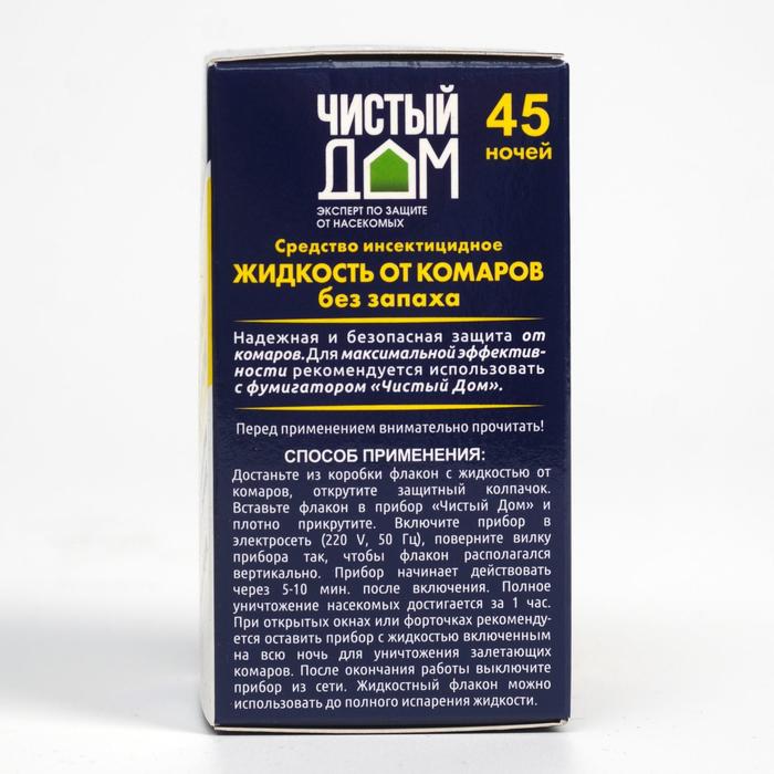 Дополнительный флакон-жидкость от комаров "Чистый дом" - это эффективное средство для защиты от комаров без использования запахов. Он предназначен для использования в помещениях и обеспечивает защиту на протяжении 45 ночей. В данной статье мы рассмотрим состав продукта, рекомендации по применению и способы использования.