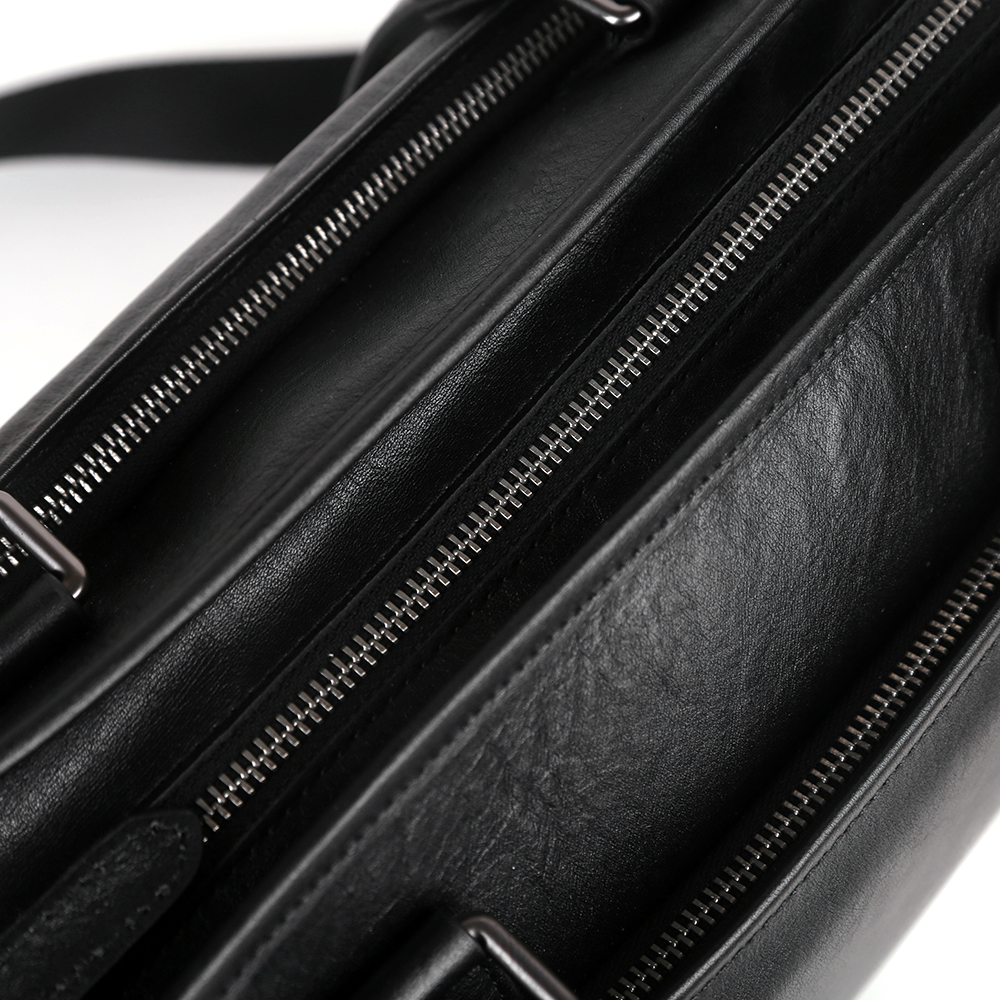 Габариты: 40 х 30 х 15 (длина х высота х ширина); Материал: Кожа; Размер: Большой; Цвет: Черный; Цвет фурнитуры: темное серебро