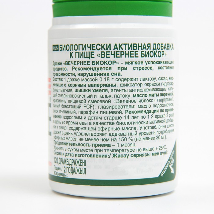 * Благодаря природному комплексу трав драже Вечернее «Биокор» обладает мягким успокаивающим и спазмолитическим действием.