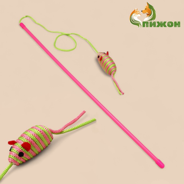 Дразнилка-удочка «Полосатая мышь», цвет МИКС