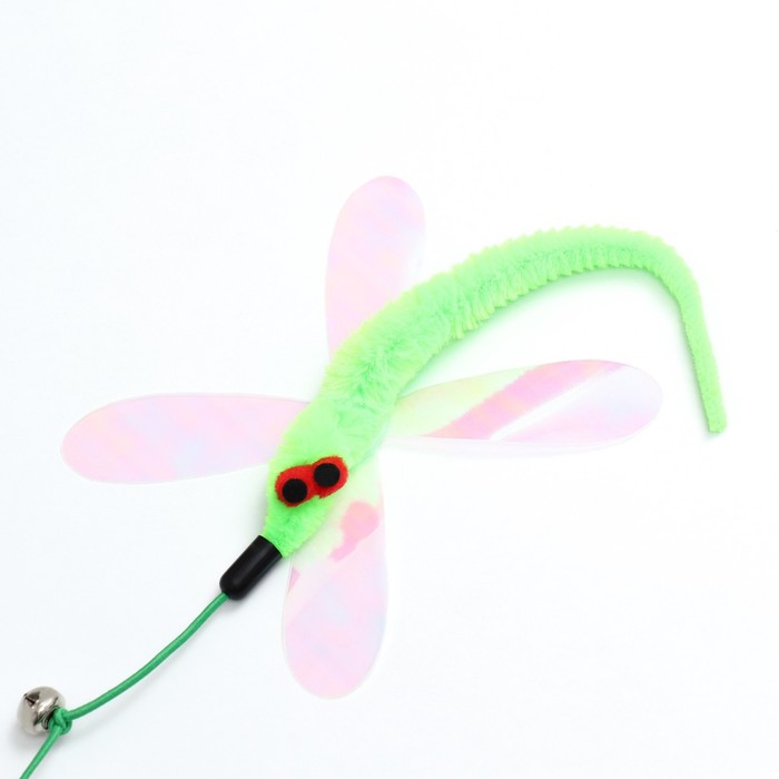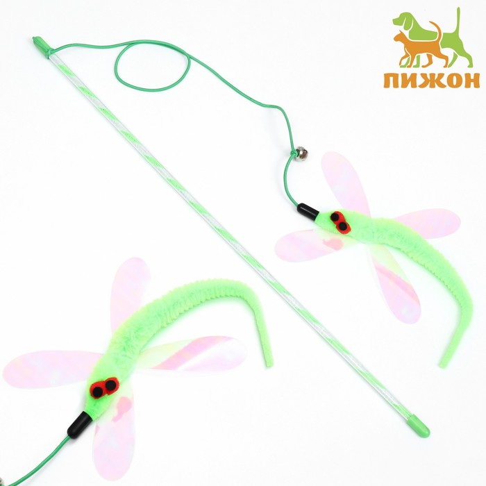 Дразнилка-удочка "Стрекоза" зелёная - игрушка, созданная специально для интерактивной игры со своей кошкой! Представлена в виде палочки на верёвке, а на конце имеется мышка с хвостом и бубенчиком. Бубенчик издаёт звонкий звук, который привлекает внимание и вызывает интерес.