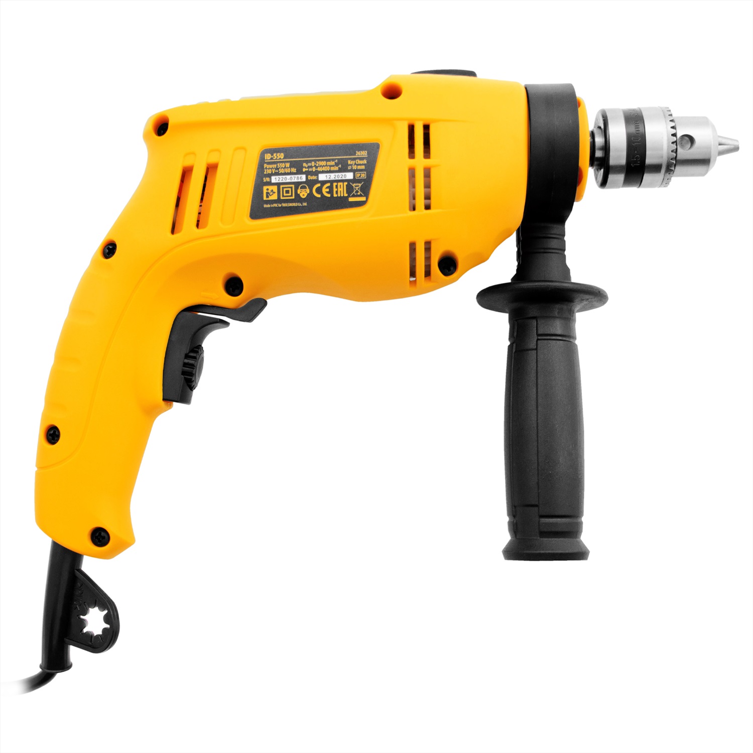 Дрель ударная ID-550, 550 Вт, 0-2900 об/мин, 46400 уд/мин Denzel