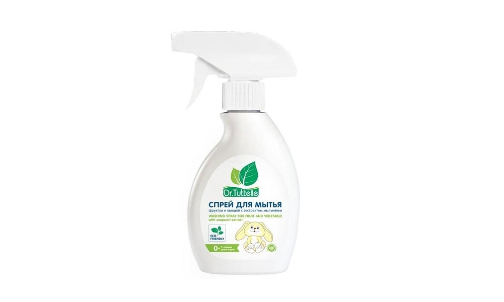Спрей для мытья фруктов и овощей с экстрактом мыльнянки Dr.Tuttelle. Экологически чистое моющее средство с содой, пищевым спиртом и экстрактом мыльнянки предназначено для мытья свежих фруктов и овощей, таких как яблоки, апельсины, виноград, помидоры, красный перец, огурцы, брокколи и так далее. Подходит для использования с ягодами и мягкими фруктами, такими как персики, клубника, голубика и прочее. Не рекомендуется для грибов из-за их пористой структуры. Входящая в состав сода эффективно удаляет налет на поверхности фруктов или овощей, а натуральный экстракт мыльнянки создает пену, которая легче смывает грязь, не оставляя привкуса и пленки.