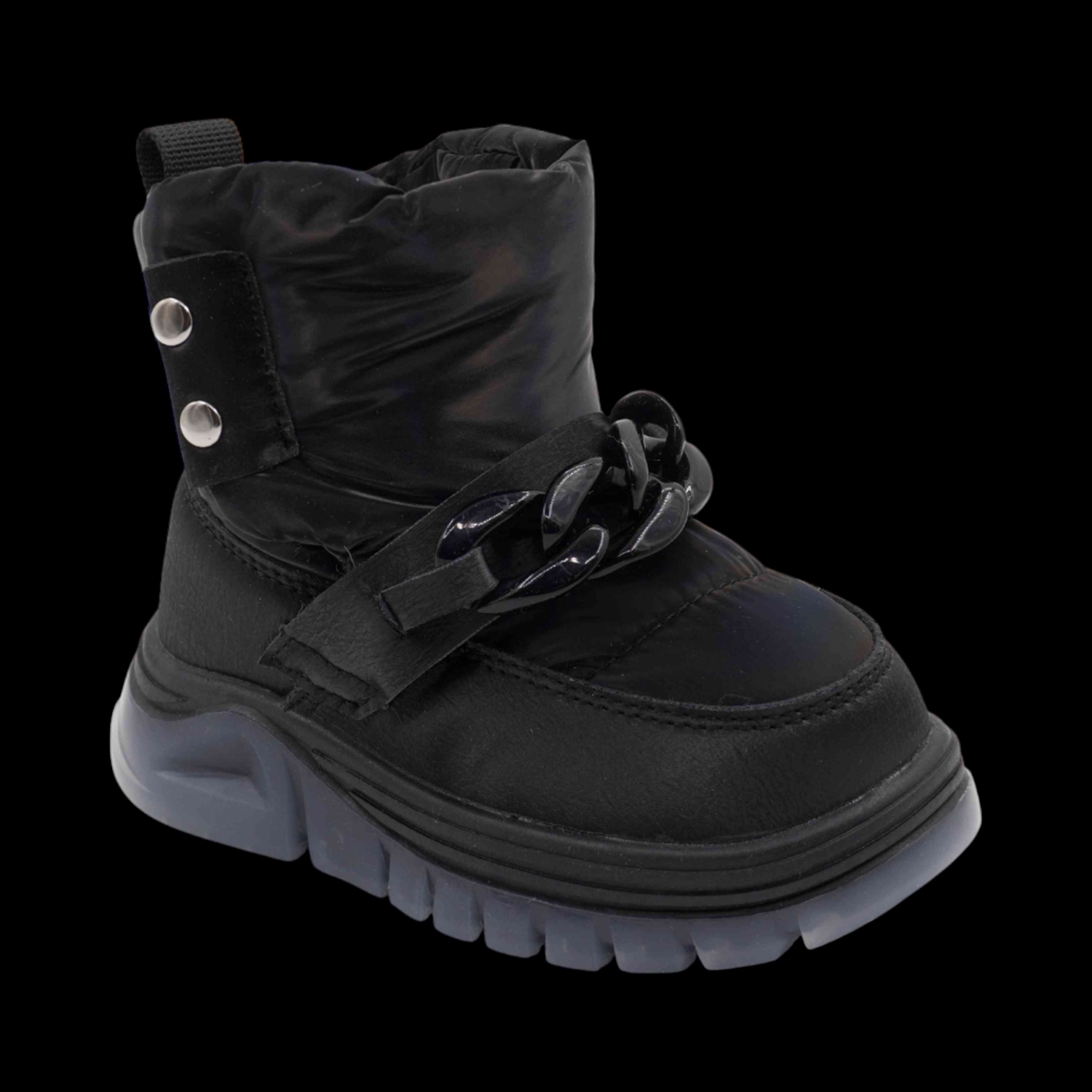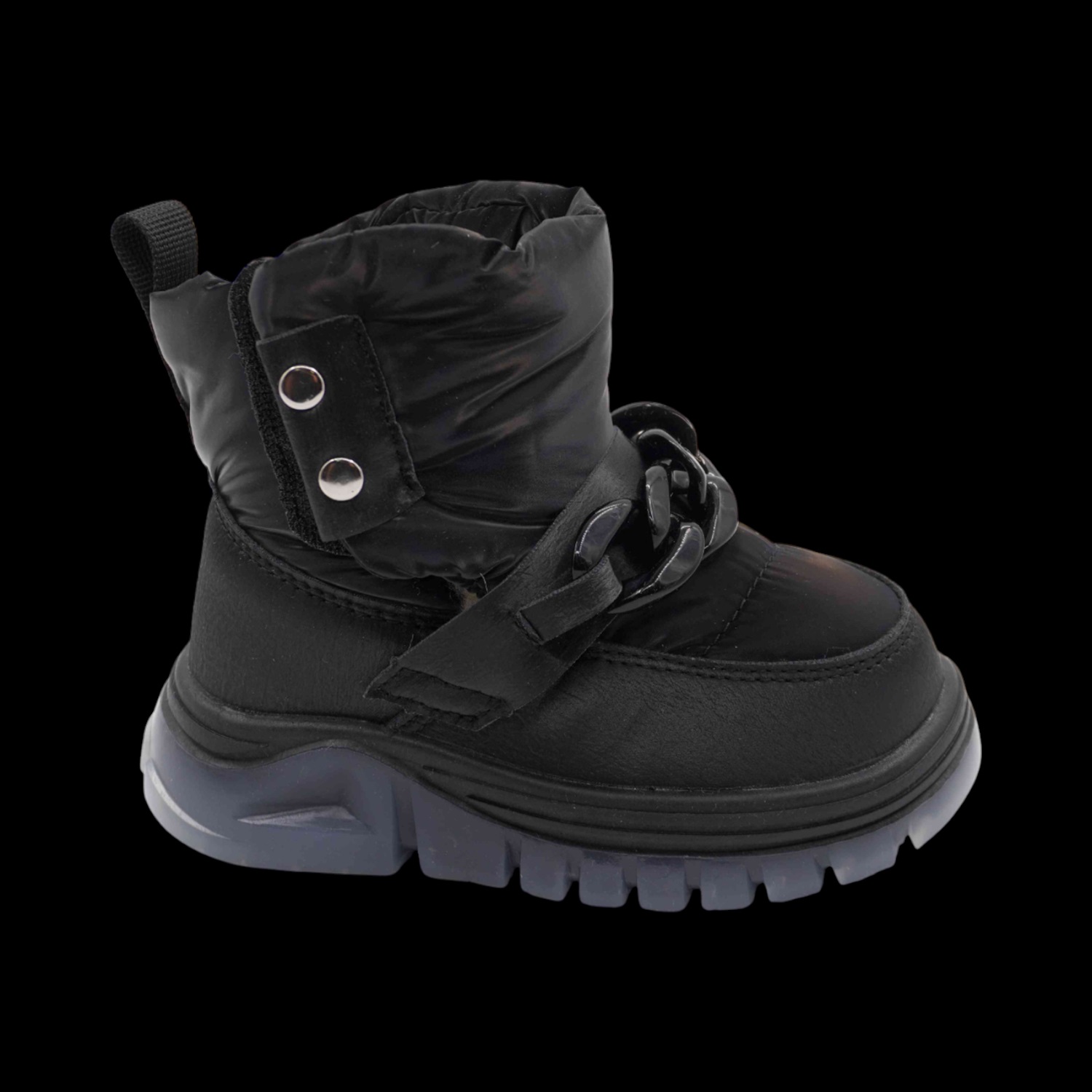 Артикул: С6062-21 черные; Внешний материал: ЭКО-кожа, Нейлон; Внутренний материал: Натуральный мех; Осталось: 22 шт. Дутики на меху для зимы. Дутики из натуральной шерсти подарят вашему малышу комфорт и уют в холодную погоду. Стильный дизайн идеально подойдет как для прогулок по городу, так и для игр в снегу. Торговая марка: " Boncy" Сезон: Зима. Основные особенности: Застежка на липе. Материал: Верх обуви выполнен из непромокаемого текстиля, что обеспечивает надежную защиту от снега и влаги. Вставки из экокожи дополнительно защищают мысок и пятку сапожек от механических повреждений. Комфорт: Мягкая, меховая стелька и удобная колодка обеспечивают поддержку стопы даже при длительной носке. Дизайн: современный и универсальный внешний вид, который подойдет как для прогулок, так и для активного отдыха. Фиксация:  Застежки липучки позволяют легко надевать и снимать обувь. Подошва: износостойкая подошва обладает нескользящим эффектом, хорошими амортизационными свойствами. Модель на любой взъем! Длина указана внутри стельки: 22р - 13,5см; 23р – 14,2см; 24р – 14,9см; 25р – 15,6см; 26р – 16,3см; 27р – 17,0см; Почему выбирают нас: Экологичный подход к производству. Надежная защита от непогоды. Удобство и стиль для любого возраста. Выберите дутики на меху для зимы и наслаждайтесь комфортом! Закажите сейчас с быстрой доставкой по всей стране. Не уверены в размере? Ознакомьтесь с нашей фото-инструкцией по подбору обуви.