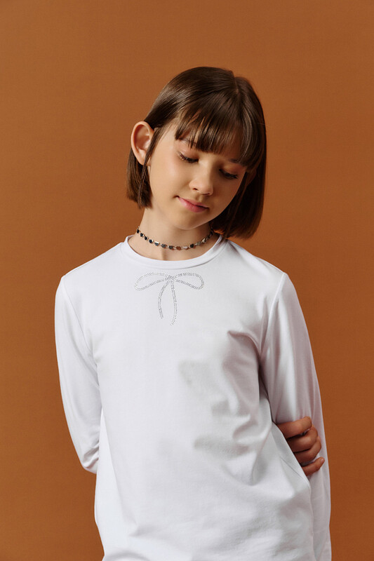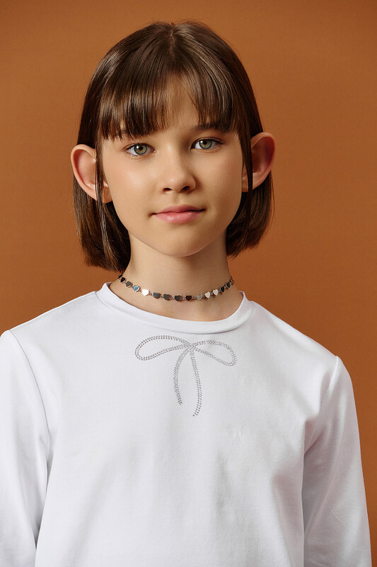 На передней части — нежная аппликация из сверкающих страз: ненавязчивый, но стильный акцент, который понравится любой девочке.