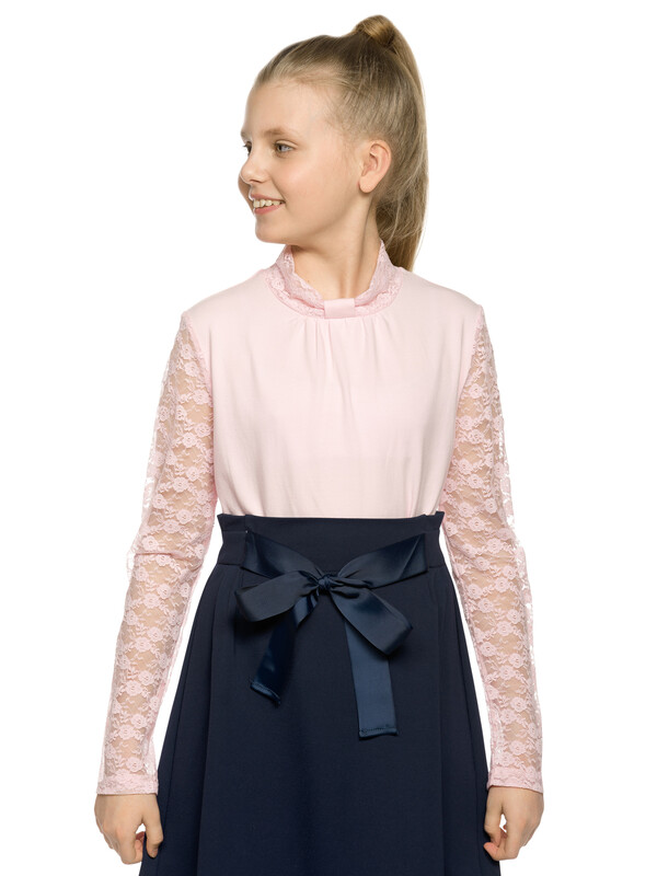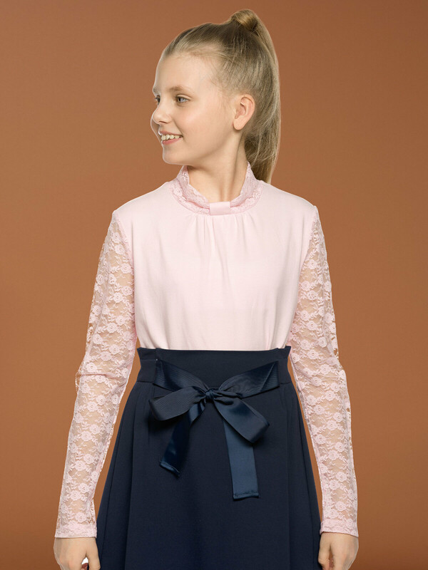 Производитель: Pelican Нарядный джемпер для девочки. Основная ткань с большим содержанием хлопка, мягкая, приятная на ощупь. Воротник-стойка и рукава сшиты из мягкого, тонкого, но прочного кружева. Комфортно носить, просто ухаживать. Воротник-стойка фиксируется декоративной петлей из основной ткани, благодаря которой горловина не вытягивается и отлично держит форму. Джемпер позволяет создать стильный школьный образ и подходит для торжественных случаев.