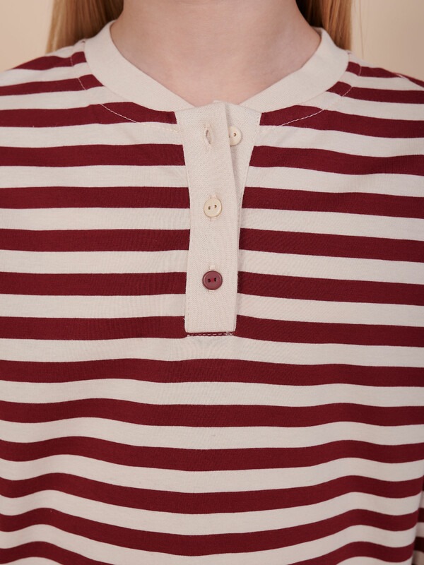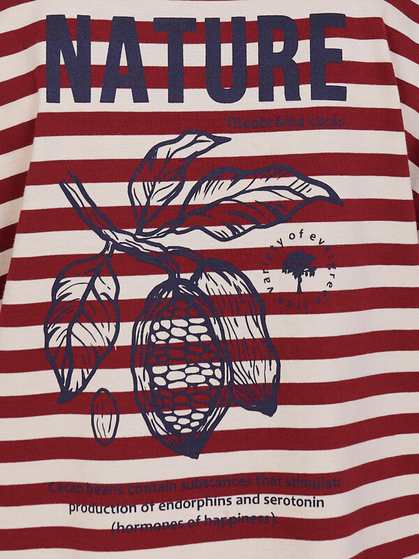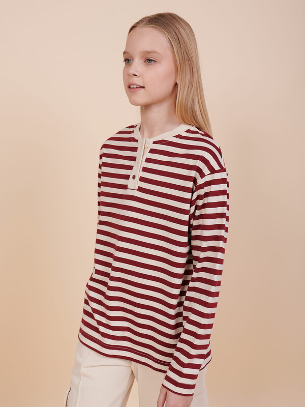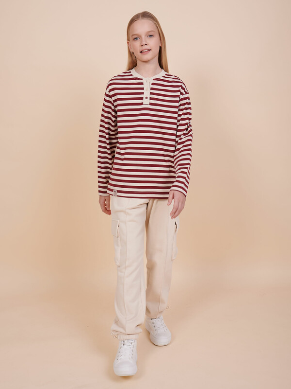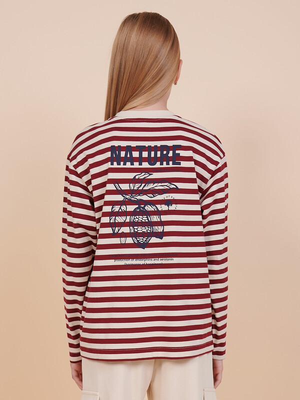 Производитель: Pelican Детский джемпер-поло для девочки. Лонгслив свободного силуэта со спущенным плечом и рубашечными, зауженными книзу рукавами подарит ребёнку комфорт и свободу движения. Вырез горловины и планка с застёжкой на пуговицы обработаны эластичной рибаной (ткань в рубчик) — она отлично держит форму, при этом ребёнку удобно надевать и снимать футболку. Тельняшка — один из супертрендов сезона! За изделием легко ухаживать. Джемпер в полоску (полоска вытканная, не принт) украшено красивым принтом в ботаническом стиле по спинке. На принте изображены какао-бобы. Надписи переводятся: "природа", "шоколадное дерево", "вечнозелёное дерево", "какао-бобы содержат вещества, которые стимулируют выработку эндорфинов и серотонина (гормоны счастья)". Принт мягкий и стойкий, не боится частых стирок.  Модель выполнена из 100% высококачественного хлопка — джемпер мягкий и великолепно пропускает воздух, что позволяет коже ребёнка свободно дышать. Изделие представлено в двух актуальных вариантах цвета: тёмно-синем и бордовом. Джемпер идеален для маленьких девочек дошкольного и младшего школьного возраста, а также девочек-подростков. Модель подходит для детского сада, спорта, прогулок, отдыха, а также в качестве домашней одежды. Размерный ряд: 1 (86); 2 (92); 3 (98); 4 (104); 5 (110); 6 (116); 7 (122); 8 (128); 9 (134); 10 (140); 11 (146). Лонгслив детский подходит для носки летом, осенью и весной (демисезон), зимой в качестве среднего слоя одежды. Его просто комбинировать с различными брюками, юбками, сарафанами и джинсами. Детский джемпер поло — замечательный подарок дочери, внучке или сестре на любой праздник. Выбирайте нужный размер по таблице размеров на фото. Цвет товара на экране вашего устройства может отличаться от цвета изделия вживую.