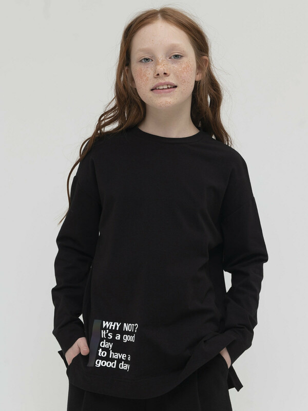 Производитель: Pelican Трикотажный джемпер для девочки. Натуральный хлопок в составе позволяет телу дышать, ткань мягкая, приятная на ощупь, не растягивается и не боится частых стирок. Прямой силуэт, спущенное плечо для комфорта и свободы движений. Внизу – перепад длин и боковые разрезы. Широкая обработка основной тканью рукавов и низа лонгслива – стильно выглядит, комфортно носится. Фишка модели – текстовый принт и серая светоотражающая полоска, которая становится разноцветной при фотовспышке. Отлично подходит для создания стильного школьного образа и на каждый день вне школы.