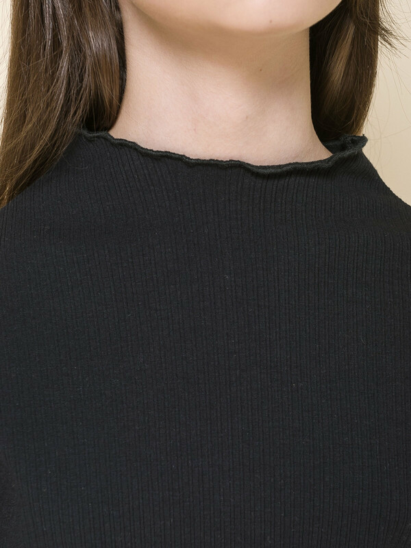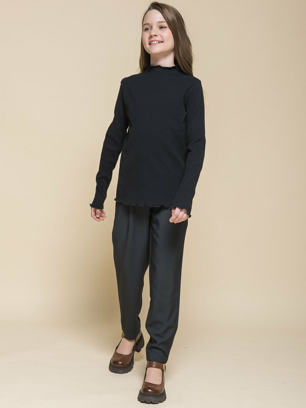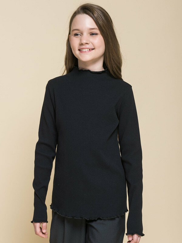 Водолазка из модной ткани в рубчик для девочки. В составе ткани 95% хлопка — изделие мягкое, тактильно приятное и комфортное для кожи ребенка. Эластан помогает сохранять форму даже после частных стирок. Модель лаконичного дизайна украшает декоративная обработка «салатный край» по горловине, низу и краям рукавов — элегантно и стильно. Модный и практичный вариант для школьной одежды: водолазка хорошо сочетается как юбками, сарафанами, так и с брюками.