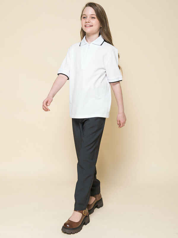 Производитель: Pelican Футболка из трикотажа пике для девочки. Приятный, плотный, мягкий материал из 100% хлопка. Почти не мнется, гигроскопичен, с хорошей воздухопроницаемостью, не требует сложного ухода. Центральная застёжка на модную короткую молнию из пластика — любой ребёнок сможет быстро надеть и снять изделие. Лаконичный дизайн позволяет сочетать футболку с различными брюками и юбками. Модный и практичный вариант школьной одежды для девочек.