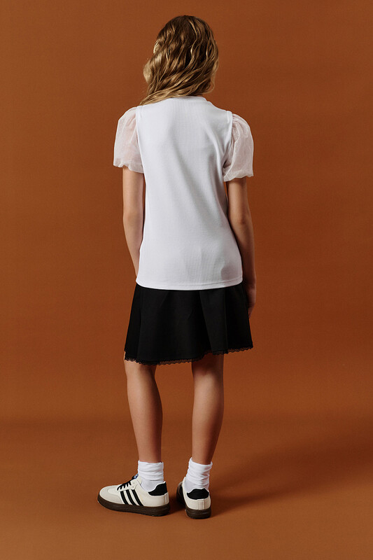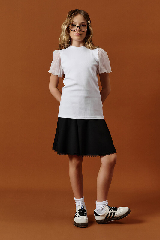 Состав: 50%хлопок 46%вискоза 4%эластан, вставка: 100%полиамид Блузка школьная для девочки из кашкорсе (трикотаж в рубчик) — с крылышками и объёмными сетчатыми рукавами. Стильная и удобная школьная блузка для девочек — подойдёт как для повседневной носки в школу, так и для особых случаев. Выполнена из приятного на ощупь трикотажа кашкорсе с добавлением эластана: ткань хорошо тянется, не сковывает движений и сохраняет форму даже после частых стирок. Дизайнерские особенности: Полуприлегающий силуэт и мягкая обтачка по горловине обеспечивают комфортную посадку По плечам — цельнокроенные крылышки из той же ткани, что и основа, придают образу нежность и индивидуальность Объёмные рукава из декоративной сетки смотрятся оригинально и легко Низ рукавов собран эластичным пайпингом из основной ткани, что подчёркивает форму и не натирает Идеально для школы и не только: ✔ Подходит как часть школьной формы для девочек ✔ Нарядный, но сдержанный стиль — идеально для линеек, классных мероприятий и фотодней ✔ Мягкий и дышащий материал — удобно в течение всего учебного дня ✔ Универсальна — сочетается с сарафанами, юбками, брюками Используйте таблицу размеров на фотографии, чтобы выбрать подходящий размер. Обратите внимание, что цвет товара на экране вашего устройства может отличаться от реального. Комментарии к товару