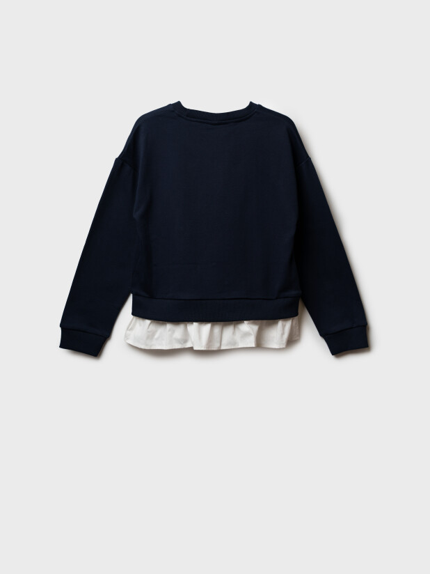 Классический темно-синий школьный трикотажный джемпер для девочки подростка от PlayToday — универсальный элемент школьного гардероба для стильных, активных и уверенных в себе учениц. Эта подростковая элегантная кофта для школы выполнена из мягкого футера с высоким содержанием хлопка, что обеспечивает комфорт в течение всего учебного дня.