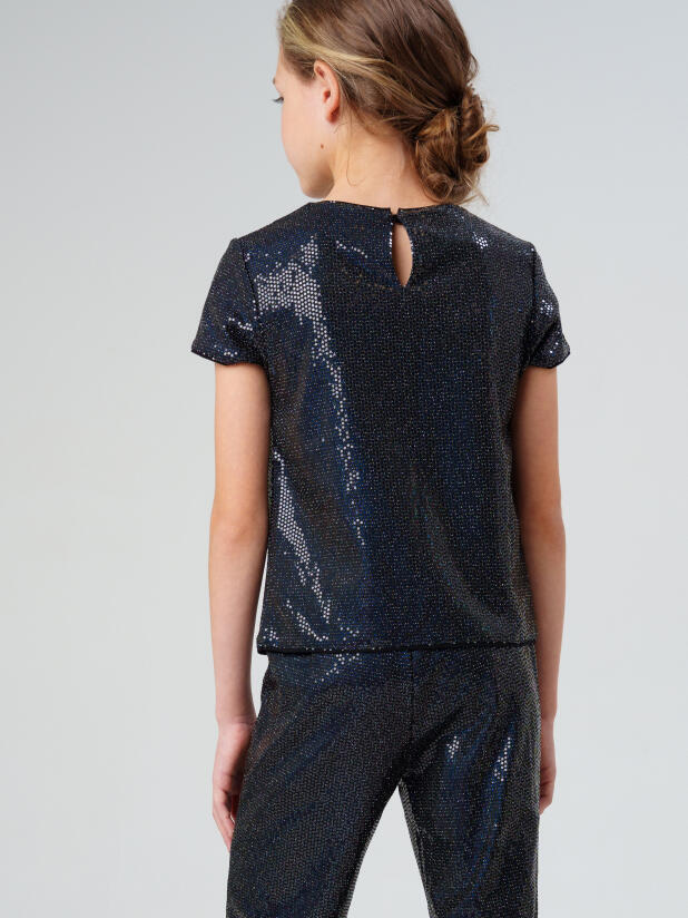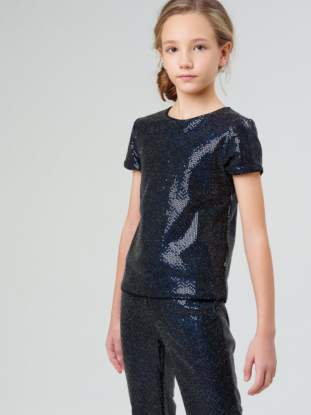 О товаре Нарядный новогодний джемпер с паетками для девочки подростка от PlayToday. Преимущества модели: + блестящая кофта для девочки — удобно, модно, стильно + трикотажная подкладка с высоким содержание хлопка + идеально для подростков: свободная посадка, не сковывает движения Уникальное сочетание ткани делает джемпер ярким акцентом гардероба. Свободный крой обеспечивает комфорт и свободу движений. Когда и как носить: Подходит для праздников, дней рождения, школьных мероприятий, фотосессий, новогодних утренников или просто как стильный наряд на выход. Советы по стилю: Носи джемпер с черными классическими брюками, юбками, грубыми ботинками или балетками от PlayToday. Подходит для девочек от 8 лет. СОСТАВ Верхняя ткань: 91% полиэстер, 5% люрекс, 4% эластан Подкладка: 60% хлопок, 40% полиэстер Уход Ручная стирка. Максимальная температура стирки 30°С. Не отбеливать. Утюжить запрещено. Чистка запрещена. Не применять сушку в барабане. Горизонтальная сушка на плоскости в расправленном состоянии. Стирать вывернутым наизнанку. Бренд PlayToday АРТИКУЛ 42521014 Цвет Черный Возрастная категория Школьники, Подростки Пол Женский Год коллекции 2025 Страна бренда Германия Страна производства Китай Возраст 8 лет, 9 лет, 10 лет, 11 лет, 12 лет, 13 лет, 14 лет, 15 лет, 16 лет Маркировка Товары легкой промышленности и одежда Миниколлекция New Year