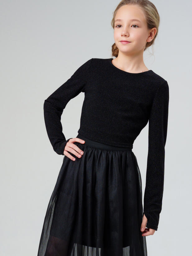 Носи нарядную кофту с люрексом с классическими брюками или юбками, ботинками челси или балетками от PlayToday. Подходит для девочек подростков и школьниц от 8 лет.
