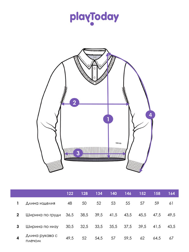 Классический синий школьный джемпер с имитацией сорочки для мальчика подростка от бренда PlayToday — стильное решение 2-в-1, которое экономит время утром и всегда выглядит опрятно. Уютный трикотаж и несъёмный воротник создают аккуратный образ без лишних слоёв.