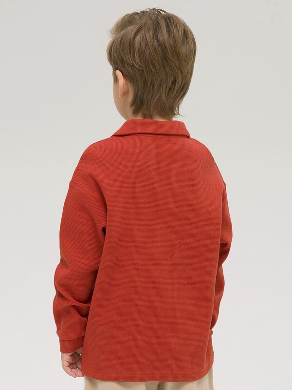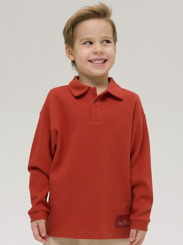 Лонгслив-поло для мальчиков. Приятный на ощупь, 100% хлопка в составе, гигроскопичный и простой в уходе вафельный трикотаж. Свободный силуэт со спущенным плечом для комфорта движений. Воротник сделан из основной ткани, планка у горловины на пуговице. Жаккардовая принтованная нашивка – фишка модели. Лонгслив подходит на каждый день, для активного образа жизни, идеален для пляжного сезона.