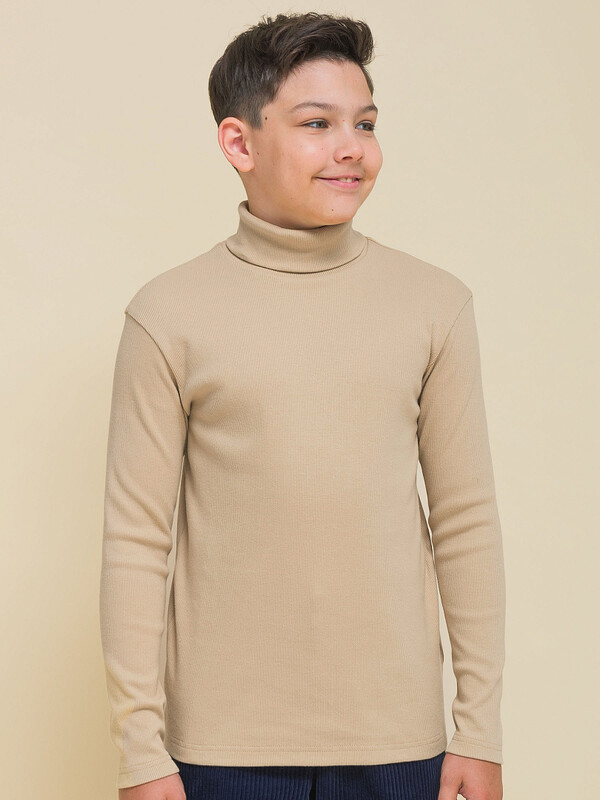 Водолазка в рубчик для мальчика. Джемперы из ткани в рубчик (кашкорсе) — один из модных трендов. Водолазка актуального свободного силуэта со спущенным плечом подарит ребёнку комфорт и не будет стеснять его движений. Водолазка-лапша с высоким воротником-стойкой защищает шею от холода и ветра — можно не надевать дополнительно шарф. Модель однотонная, без принта. За джемпером просто ухаживать. В составе ткани преобладет высококачественный хлопок — джемпер приятен на ощупь и великолепно пропускает воздух, позволяя коже ребёнка дышать. Эластан помогает изделию сохранить первоначальную форму в течение длительного времени. Водолазка представлена в двух универсальных цветах: бежевый и тёмно-синий. Размерная линейка: 2 (92); 3 (98); 4 (104); 5 (110); 6 (116); 7 (122); 8 (128); 9 (134); 10 (140); 11 (146). Замечательная водолазка на мальчика дошкольного и младшего школьного возраста, а также подростка. Подходит для детского сада, школы, отдыха, прогулок и дома. Водолазка детская идеальна для круглогодичного применения: летом, осенью, зимой, весной и демисезон. Её легко комбинировать с различными брюками. Это великолепный подарок сыну, внуку, брату или племяннику на любой праздник или просто в качестве знака внимания и заботы.