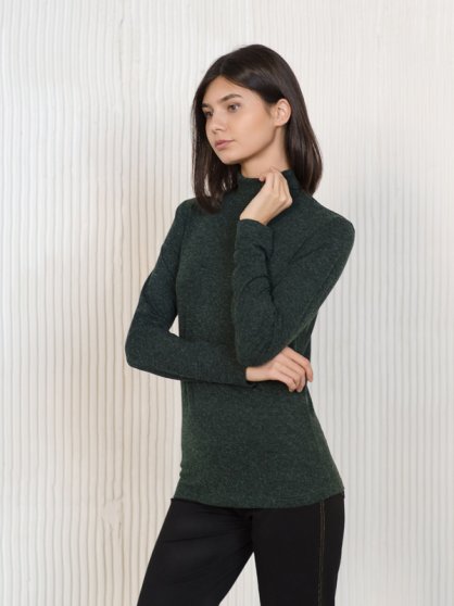 Оптовая продажа. Джемпер женский из вискозного полотна полуприлегающего силуэта, длинными рукавами, воротником отворотом. однотонный.