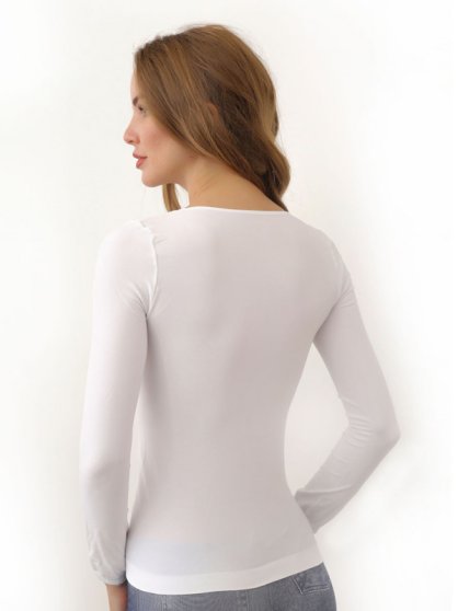 Оптовая продажа. Джемпер женский, однотонный из микрофибры с длинным рукавом и круглым вырезом по горловине.