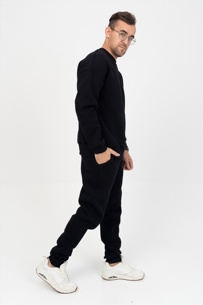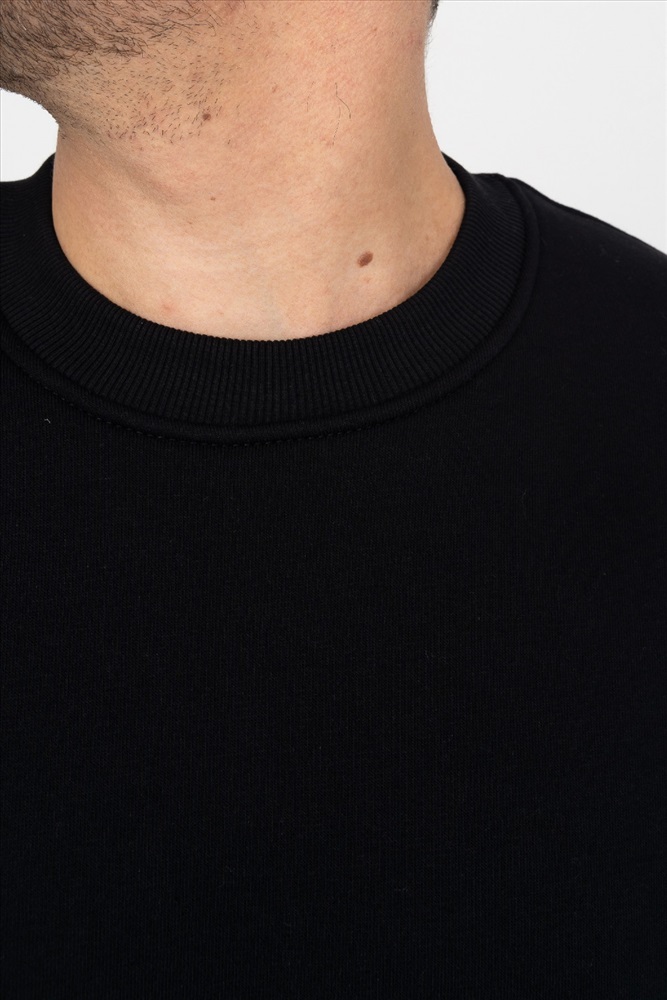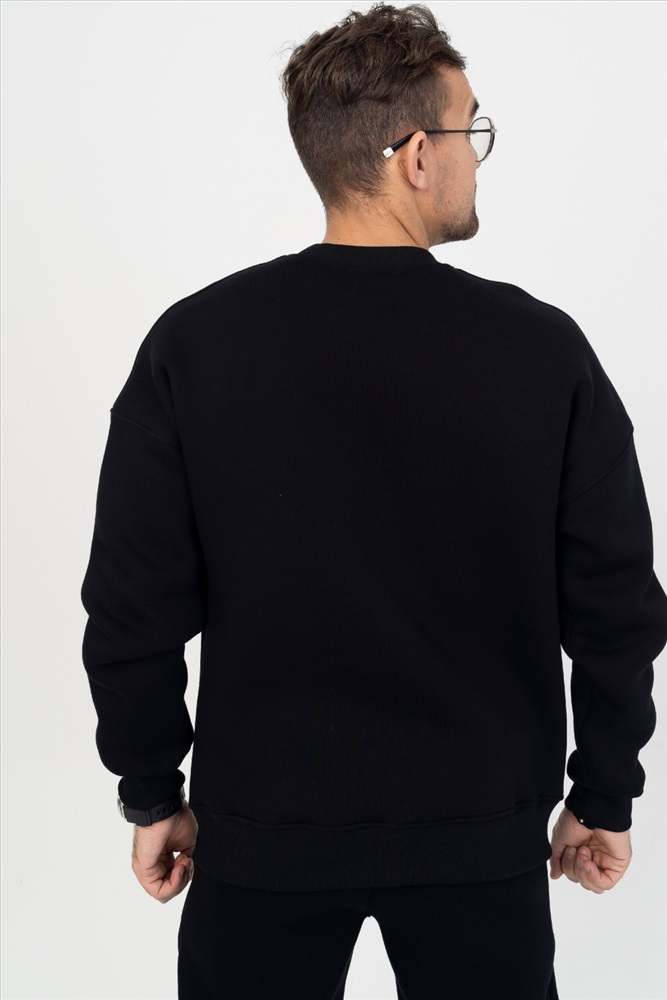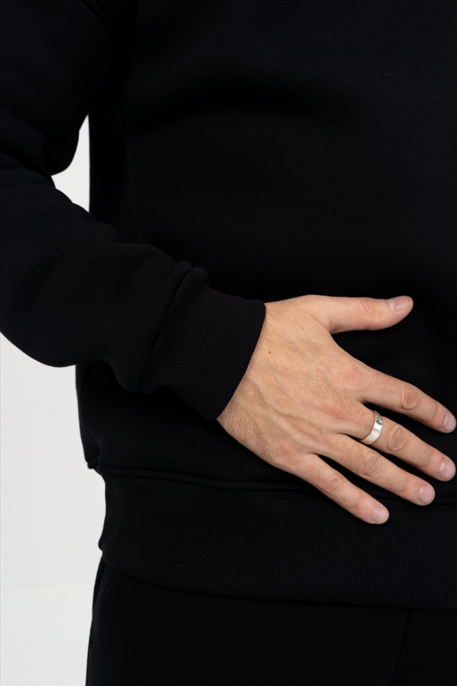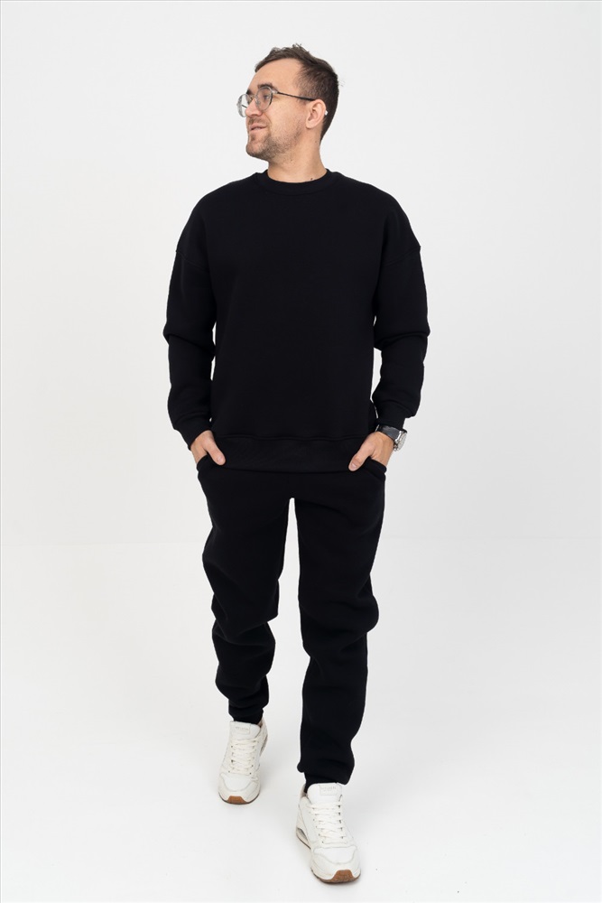 Мужской свитшот из мягкого хлопкового футера с начёсом свободного силуэта. Горловина круглой формы с планкой из контрастного трикотажа как на свитере. Плечо спущенное с объемными рукавами на манжете. Все эти детали делают эту модель особенной привлекательной, выглядит очень эффектно и стильно.