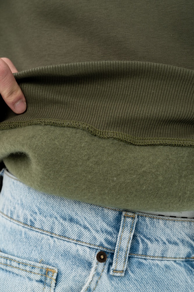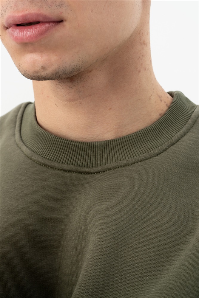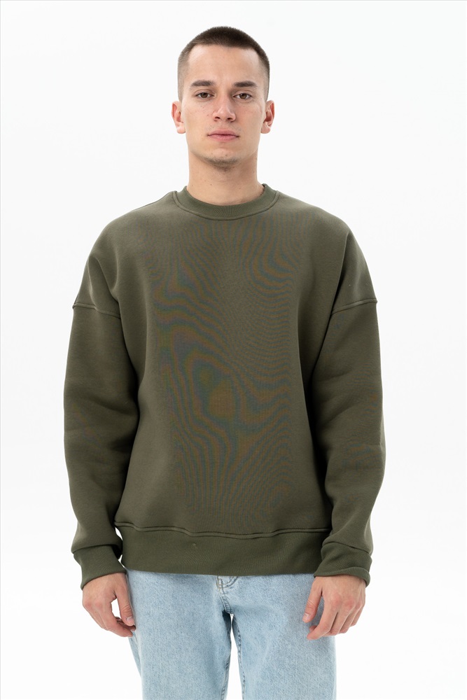 Мужской свитшот из мягкого хлопкового футера с начёсом свободного силуэта. Горловина круглой формы с планкой из контрастного трикотажа как на свитере. Плечо спущенное с объемными рукавами на манжете. Все эти детали делают эту модель особенной привлекательной, выглядит очень эффектно и стильно.