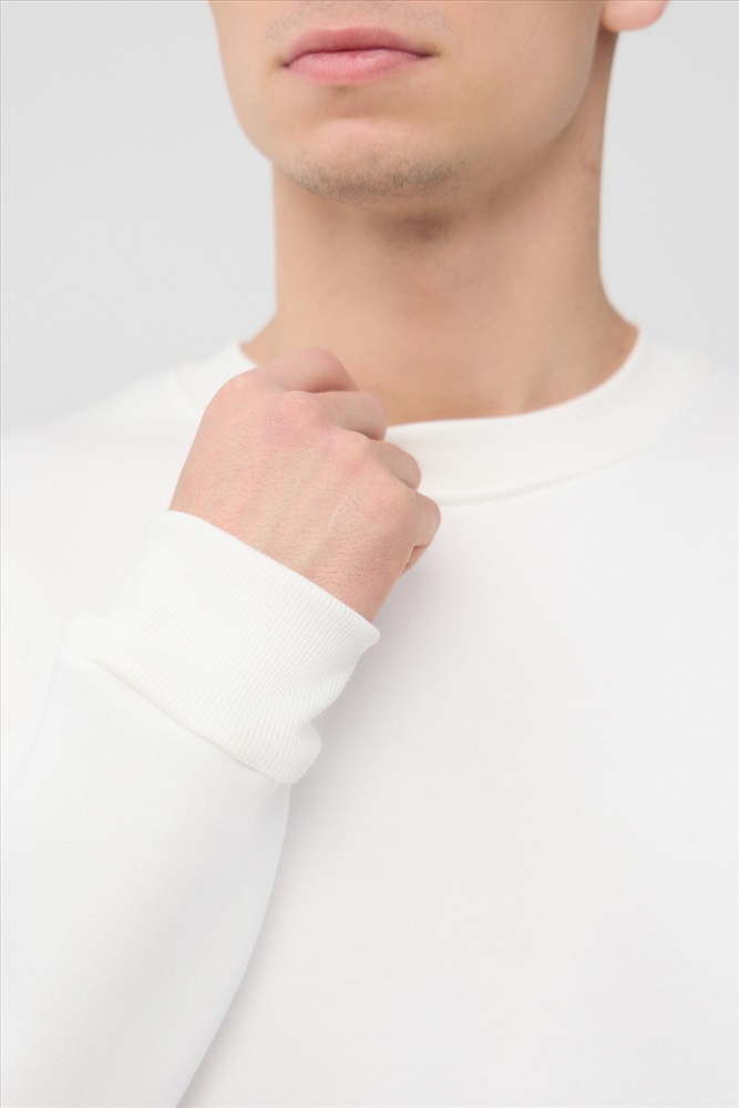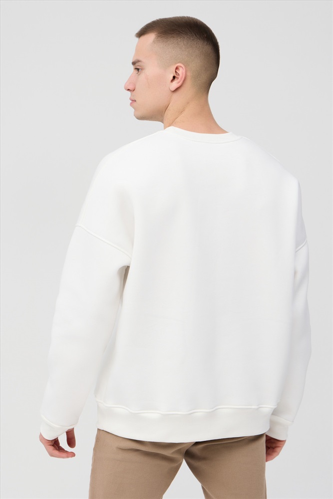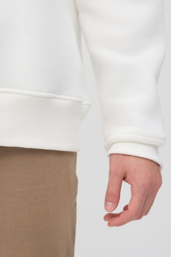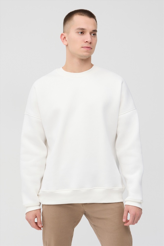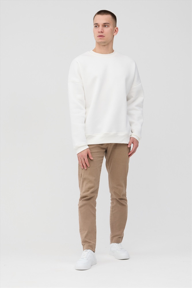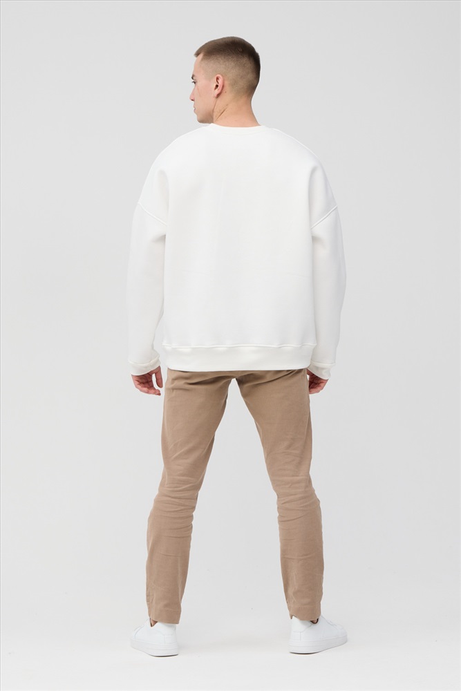 Мужской свитшот из мягкого хлопкового футера с начёсом свободного силуэта. Горловина круглой формы с планкой из контрастного трикотажа как на свитере. Плечо спущенное с объемными рукавами на манжете. Все эти детали делают эту модель особенной привлекательной, выглядит очень эффектно и стильно.