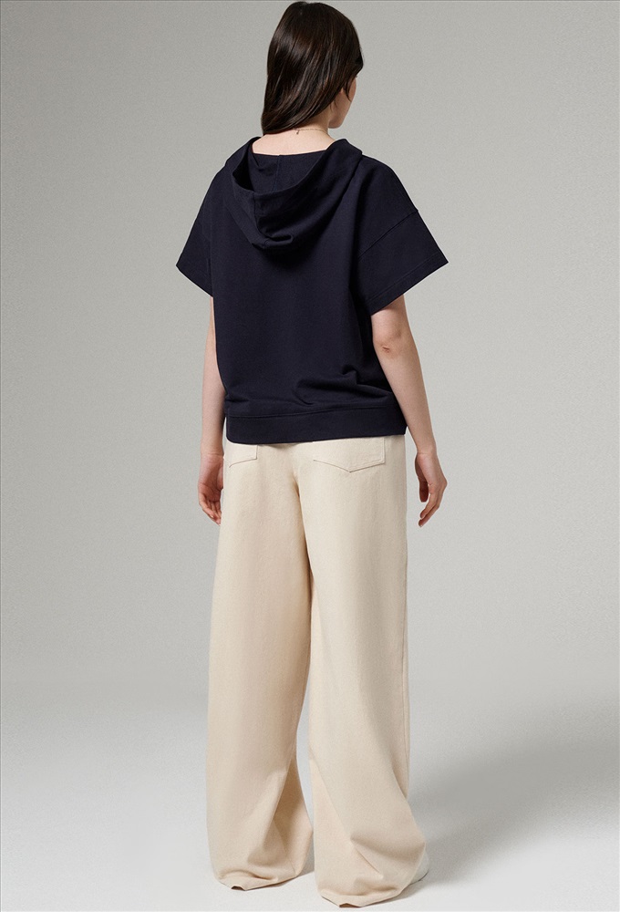 Оригинальный джемпер свободного кроя, с коротким рукавом, впереди имеется молния. Она выполняет одновременно декоративную и функциональную роль.