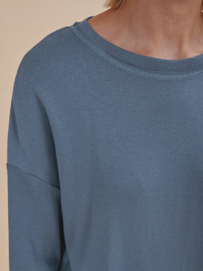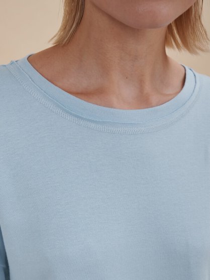 Оптовая продажа. Лонгслив женский из высококачественного хлопка и модала, среднего объема, с прямыми длинными рукавами, круглым вырезом горловины, однотонный.
