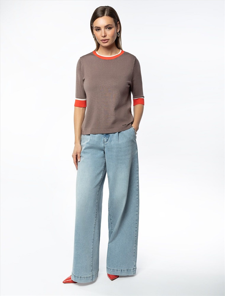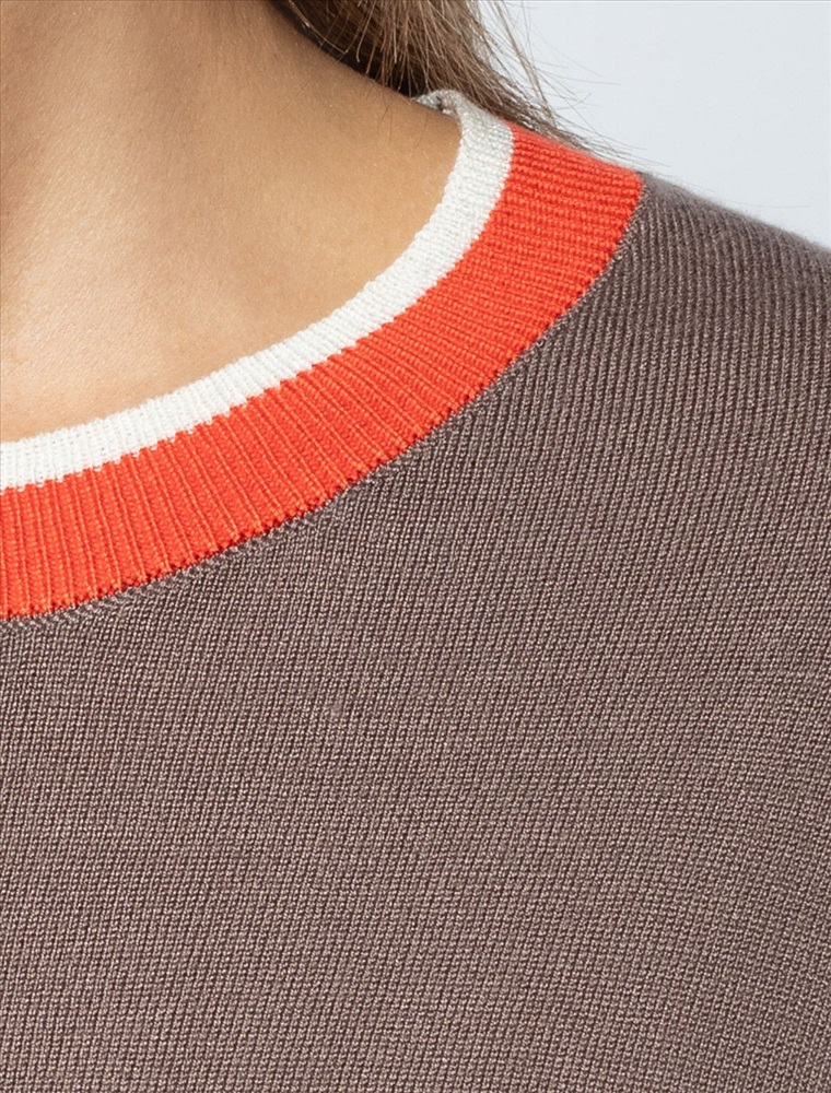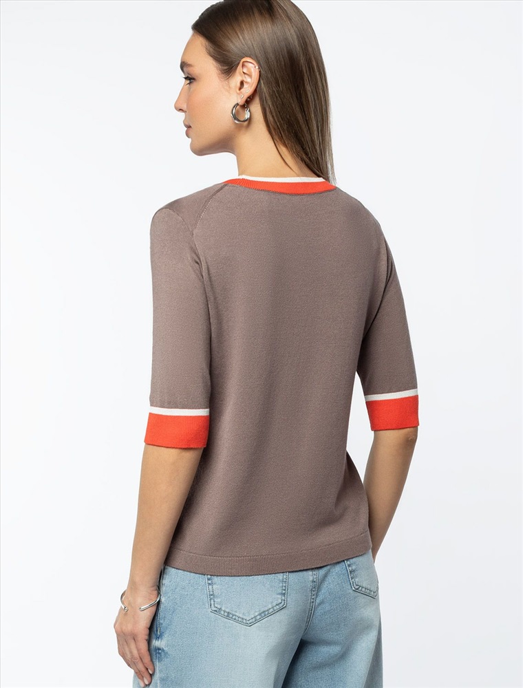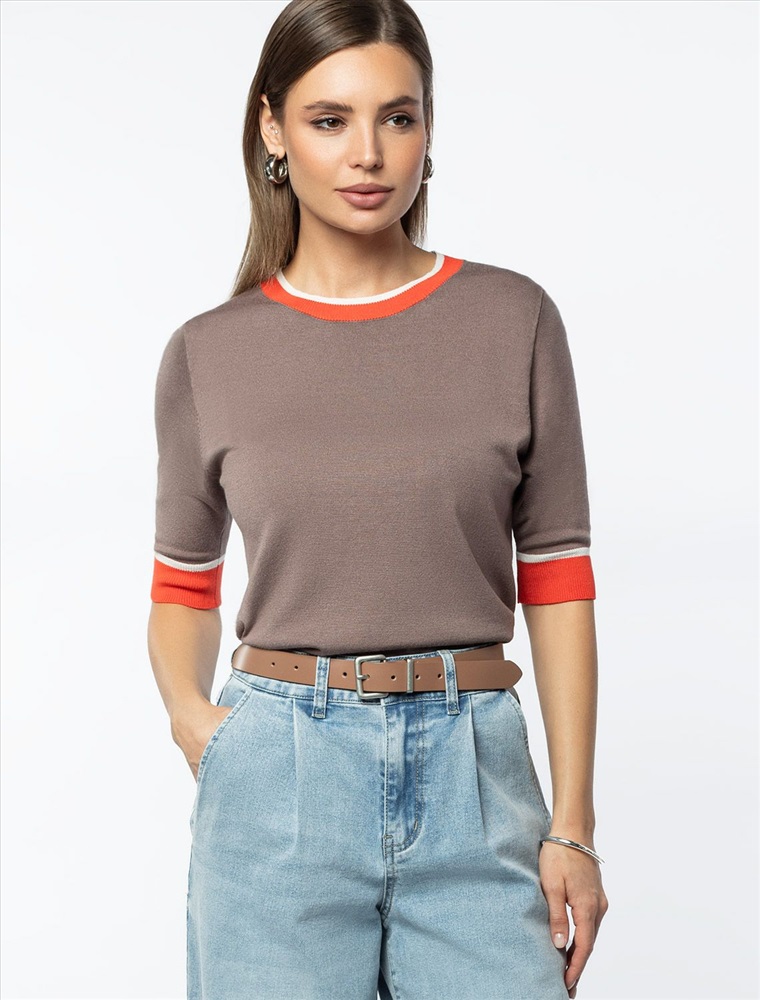 Джемпер тонкой вязки выполнен из вискозы с нейлоном. Мягкая пряжа приятная к телу дарит настоящий комфорт в любое время года. Модель хорошо сидит по фигуре и впишется в любой гардероб, а продуманное сочетание цветов позволит создать множество образов. Из украшений фирменный логотип бренда.